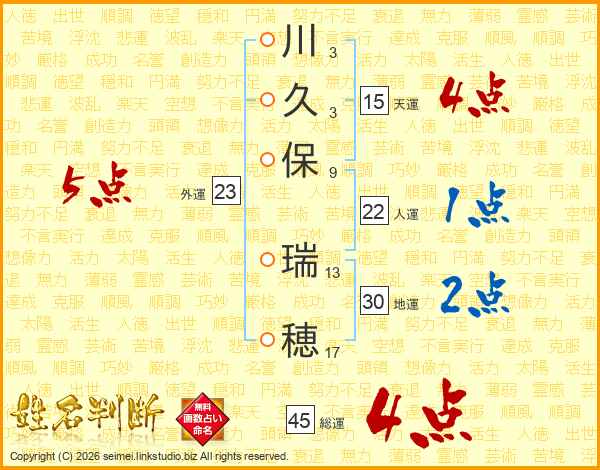 川久保瑞穂さんの総運は45画の4点!
