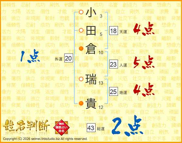 小田倉瑞貴さんの総運は43画の2点!