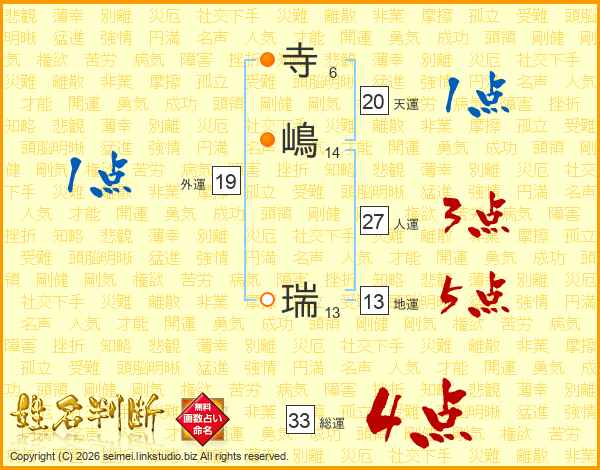 寺嶋瑞さんの総運は33画の4点!