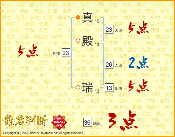 真殿瑞さんの天運は23画の5点!