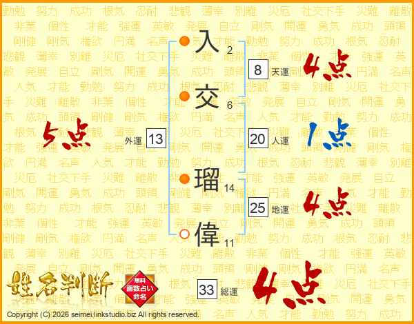 入交瑠偉さんの総運は33画の4点!