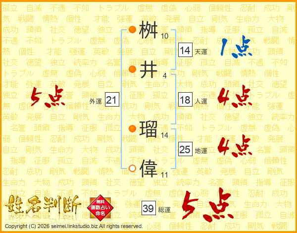 桝井瑠偉さんの総運は39画の5点!