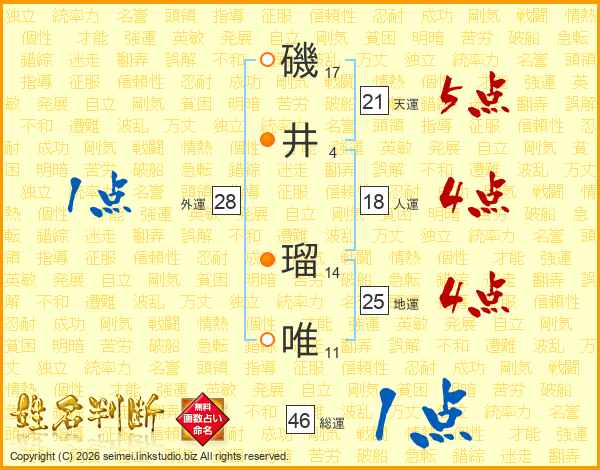 磯井瑠唯さんの地運は25画の4点!