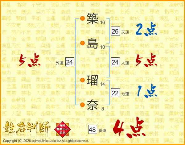 築島瑠奈さんの総運は48画の4点!
