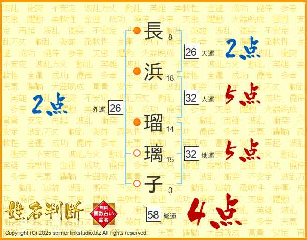 長浜瑠璃子さんの総運は58画の4点!