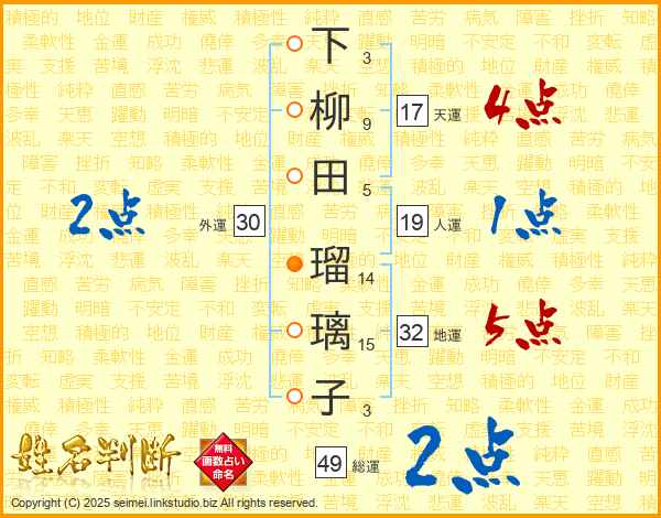 下柳田瑠璃子さんの総運は49画の2点!