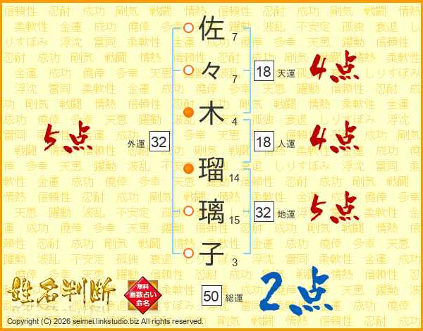佐々木瑠璃子さんの外運は32画の5点!
