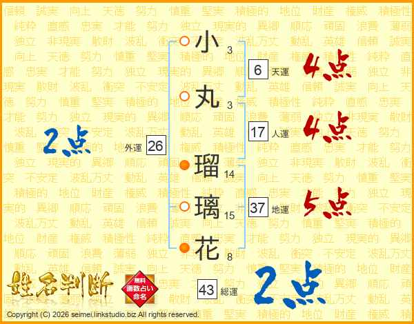 小丸瑠璃花さんの外運は26画の2点!