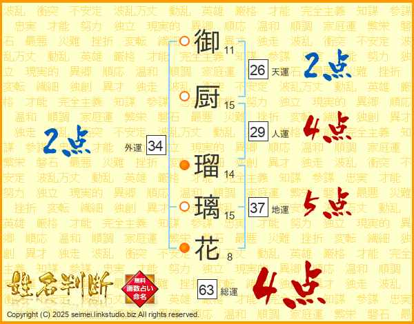 御厨瑠璃花さんの総運は63画の4点!