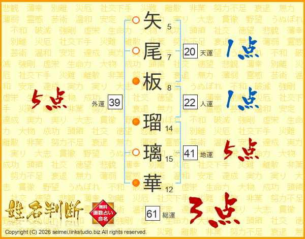 矢尾板瑠璃華さんの外運は39画の5点!