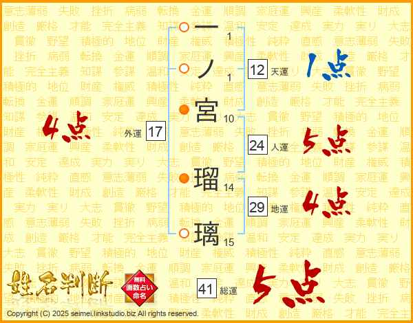 一ノ宮瑠璃さんの外運は17画の4点!