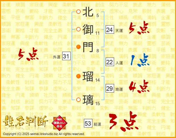 北御門瑠璃さんの総運は53画の3点!