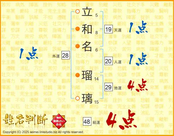 立和名瑠璃さんの総運は48画の4点!