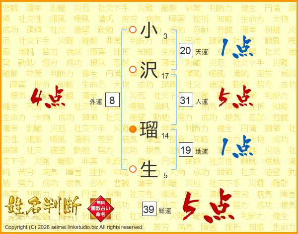 小沢瑠生さんの総運は39画の5点!