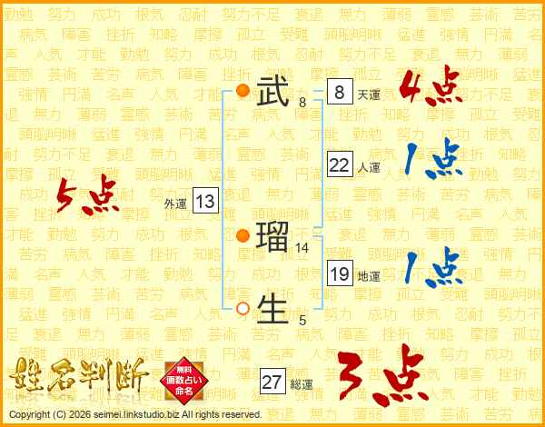 武瑠生さんの外運は13画の5点!