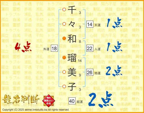 千々和瑠美子さんの総運は40画の2点!