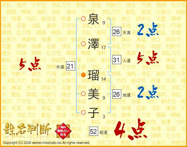 泉澤瑠美子さんの総運は52画の4点!