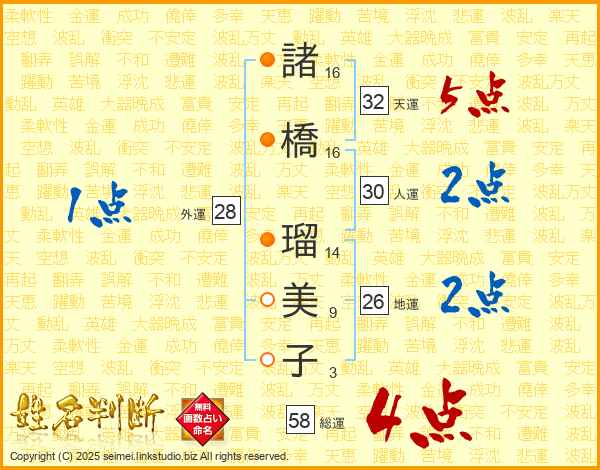 諸橋瑠美子さんの総運は58画の4点!