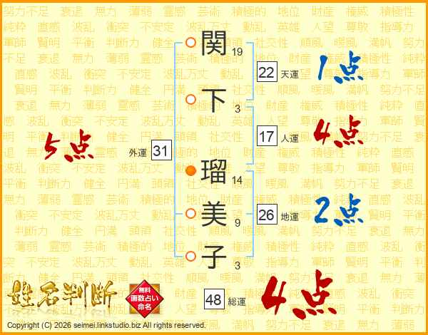 関下瑠美子さんの総運は48画の4点!