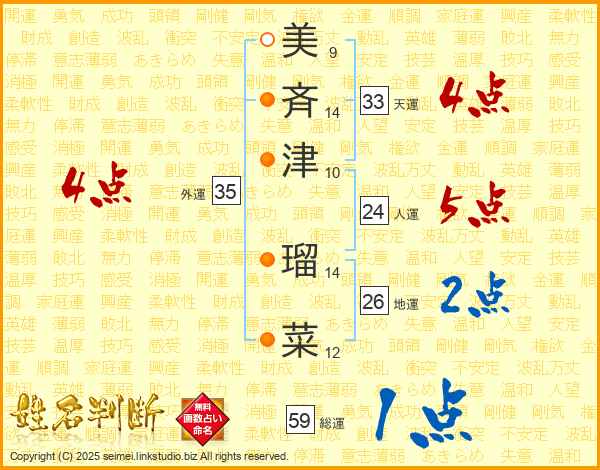 美斉津瑠菜さんの外運は35画の4点!