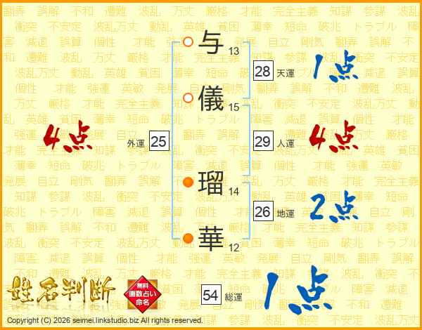与儀瑠華さんの総運は54画の1点!