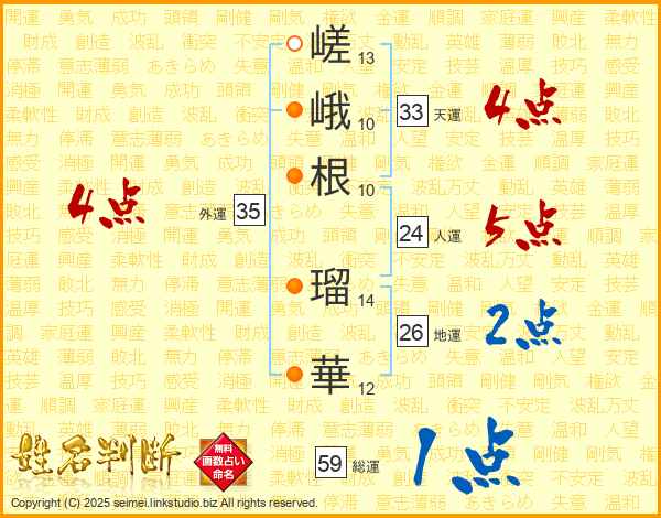 嵯峨根瑠華さんの総運は59画の1点!