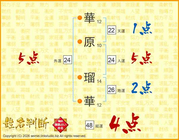 華原瑠華さんの外運は24画の5点!