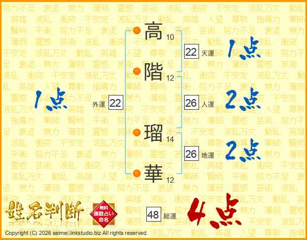 高階瑠華さんの総運は48画の4点!