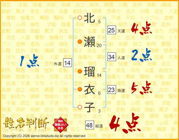 北瀬瑠衣子さんの総運は48画の4点!