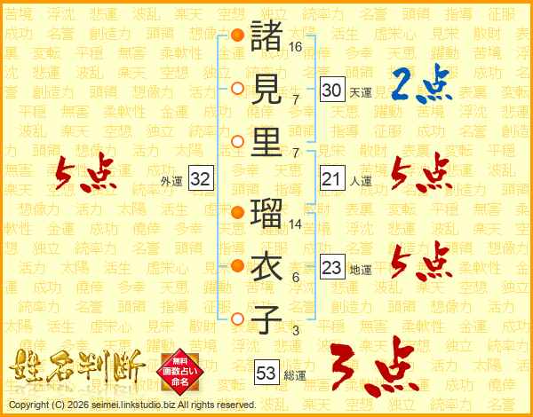 諸見里瑠衣子さんの総運は53画の3点!