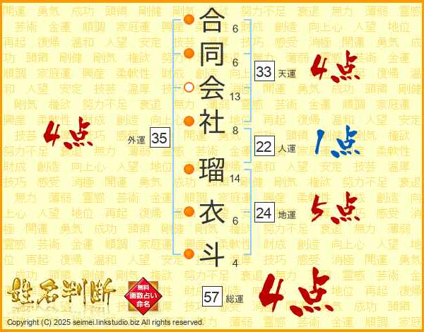 合同会社瑠衣斗さんの天運は33画の4点!