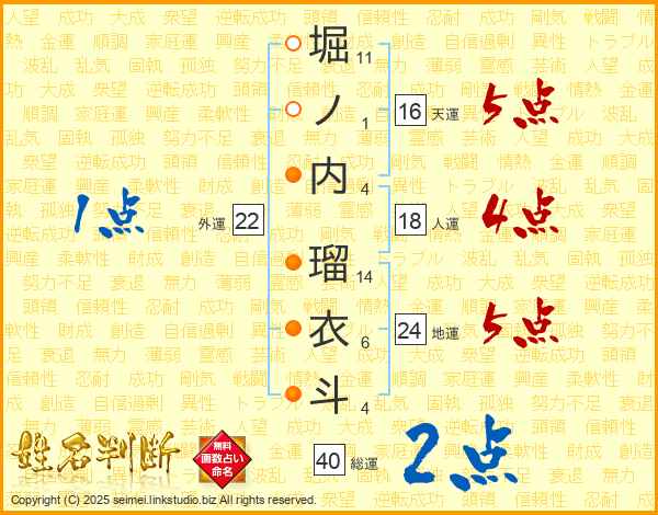 堀ノ内瑠衣斗さんの総運は40画の2点!