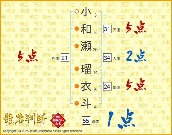 小和瀬瑠衣斗さんの総運は55画の1点!