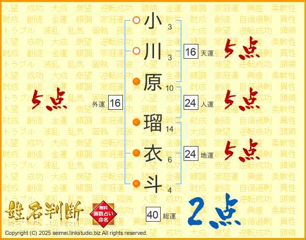 小川原瑠衣斗さんの人運は24画の5点!