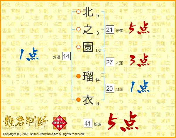 北之園瑠衣さんの総運は41画の5点!
