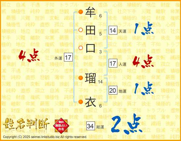 牟田口瑠衣さんの外運は17画の4点!