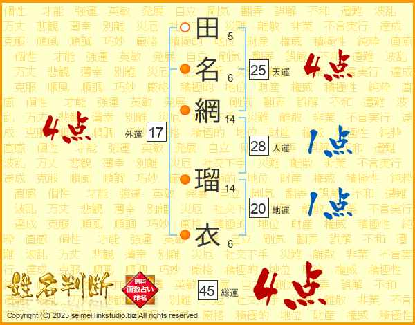 田名網瑠衣さんの天運は25画の4点!