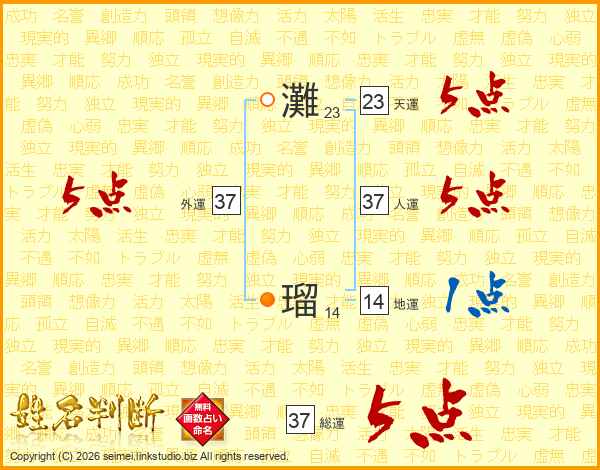 灘瑠さんの外運は37画の5点!