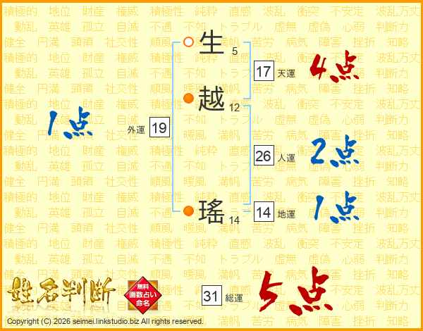 生越瑤さんの総運は31画の5点
