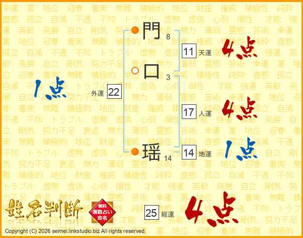門口瑶さんの総運は25画の4点!
