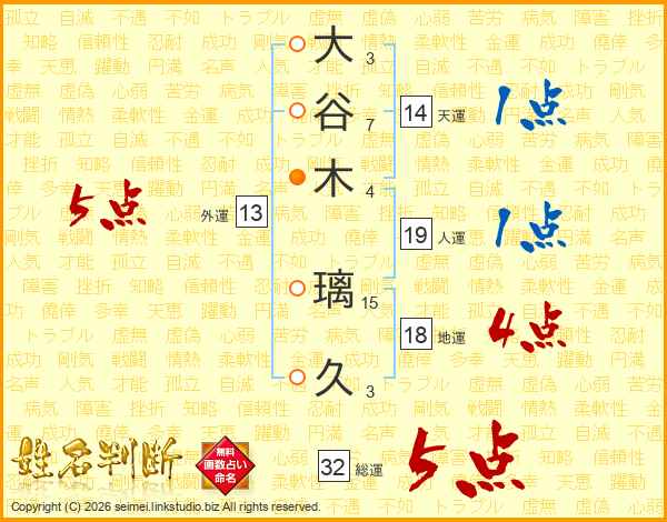 大谷木璃久さんの総運は32画の5点!