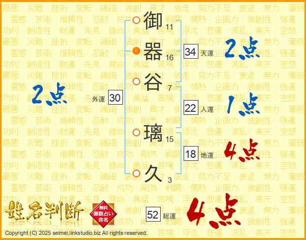 御器谷璃久さんの総運は52画の4点!
