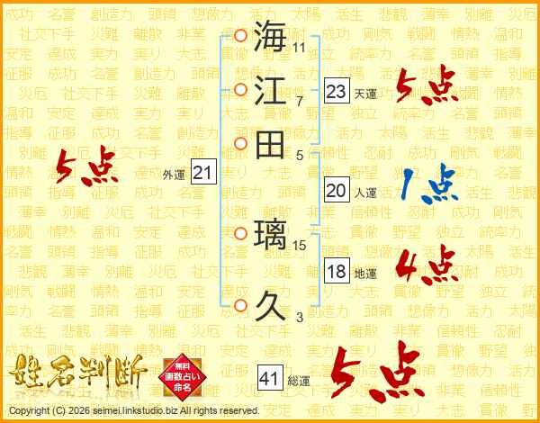 海江田璃久さんの総運は41画の5点!