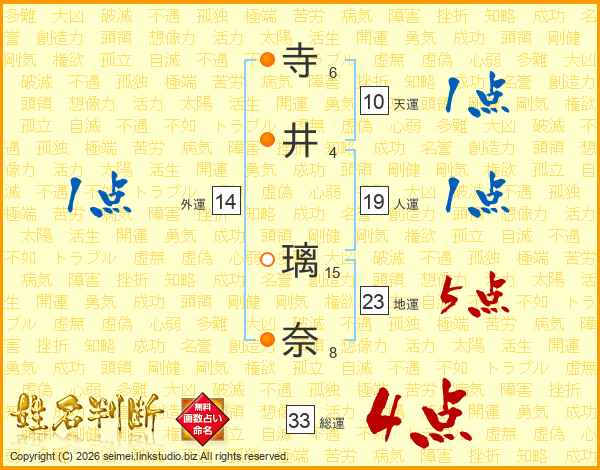 寺井璃奈さんの総運は33画の4点!
