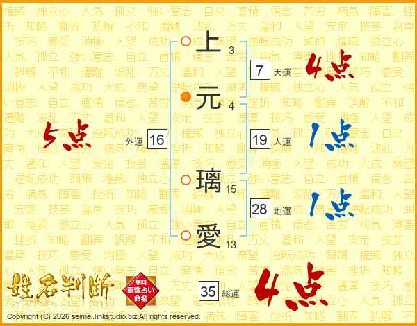 上元璃愛さんの総運は35画の4点!