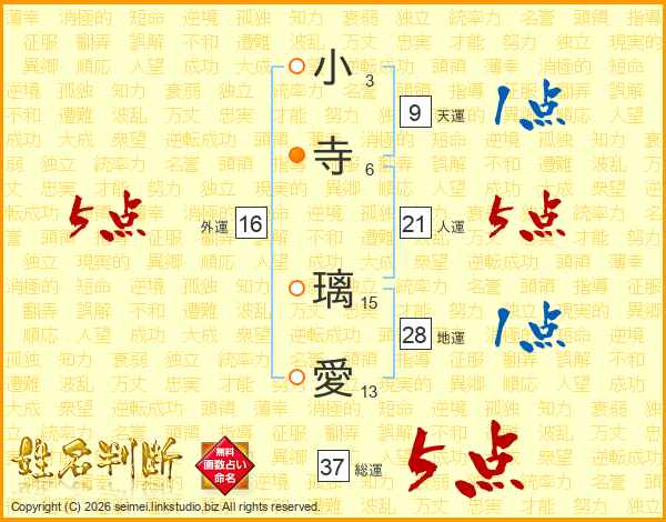 小寺璃愛さんの総運は37画の5点!