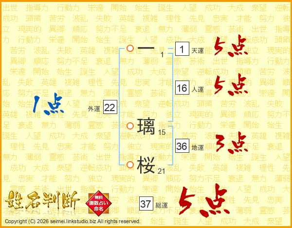 一璃桜さんの総運は37画の5点!