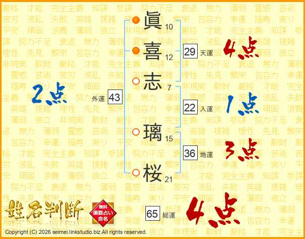 眞(10画)喜(12画)志(7画) 璃(15画)桜(21画)