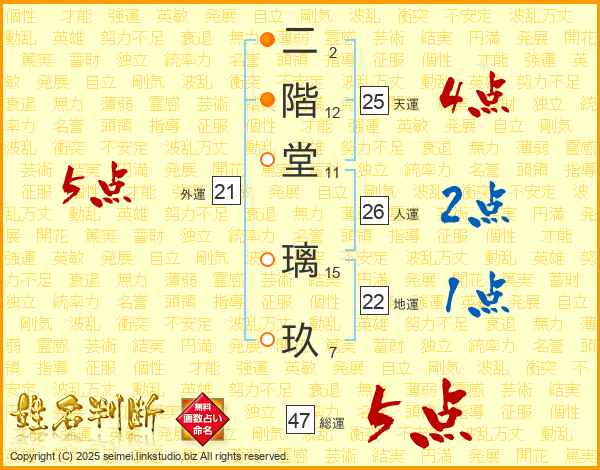 二(2画)階(12画)堂(11画) 璃(15画)玖(7画)