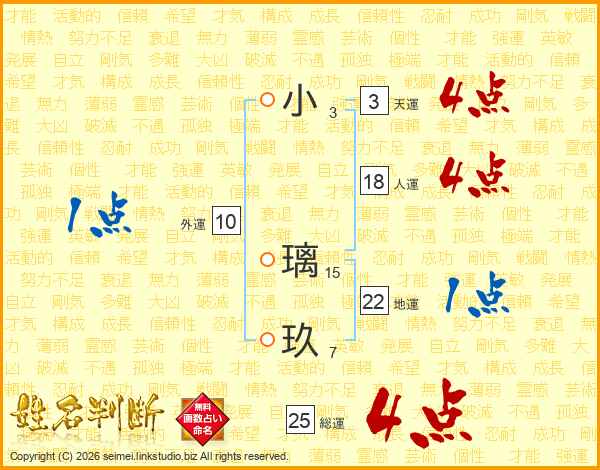 小璃玖さんの総運は25画の4点!